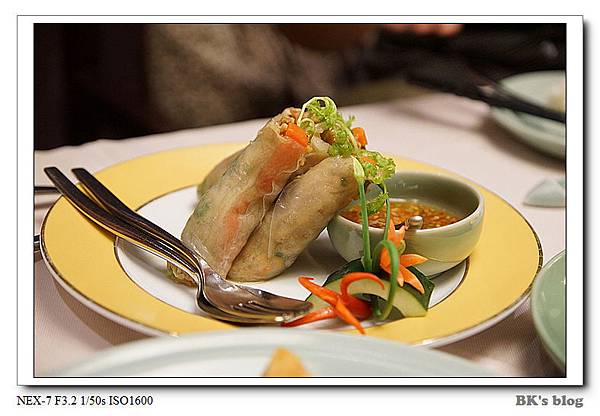 這晚,我們一行4大1小小,點了一些基本功夫菜~打拋豬肉、越南風春捲、月亮蝦餅、蝦醬空心菜、碳烤牛小排、海鮮酸辣湯;這樣五菜一湯共3700多大洋!平均一道菜約5-600元,量不多,所以算是高價位。